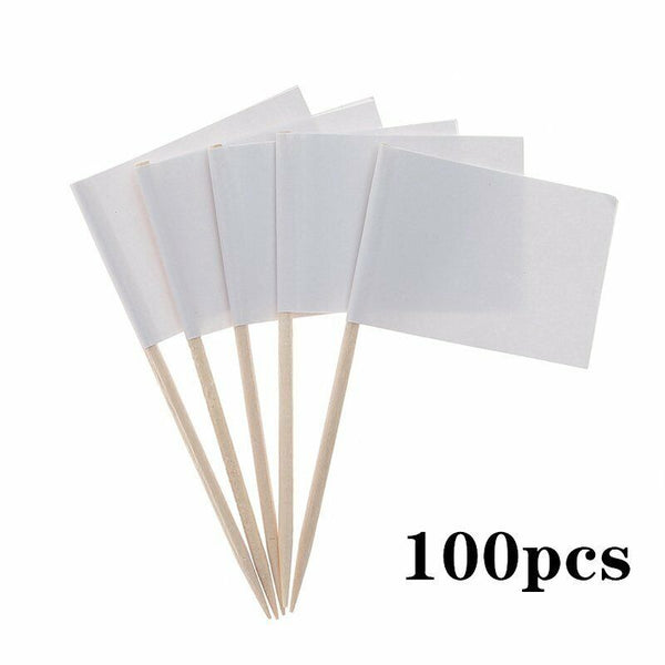 UP100X Pure White Flag Toothpick for Cooking Cupcake Party Christmas Fruit Tooth