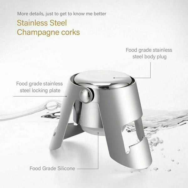 Wine Champagne Stopper Stainless Steel Reusable Sparkling Plugs Bottle Sealer AU