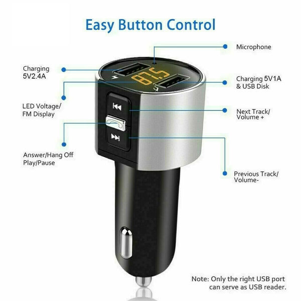 This Bluetooth FM transmitter is a perfect solution for those who don't have an auxiliary jack in their car and don't have Bluetooth capabilities, and it also can be used as a charger for all of your devices.