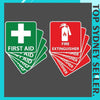 FIRST AID X 5 FIRE EXTINGUISHER X 5 100MM HIGH X 100MM WIDE Made from a waterproof vinyl...