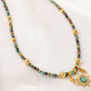 Description: Embrace the vintage charm with this stunning necklace featuring a turquoise Sun pendant, complemented by colourful beaded...