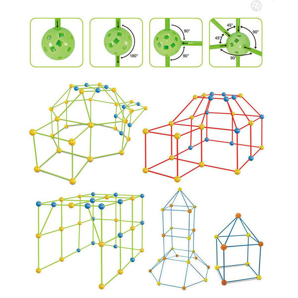 Encourages creativity and stimulates imagination and develops critical thinking skills: Your children can build their own fort and design a house, castle, rocket ship and more! Our Fort-Kit encourages children to develop their imagination and problem solving skills!