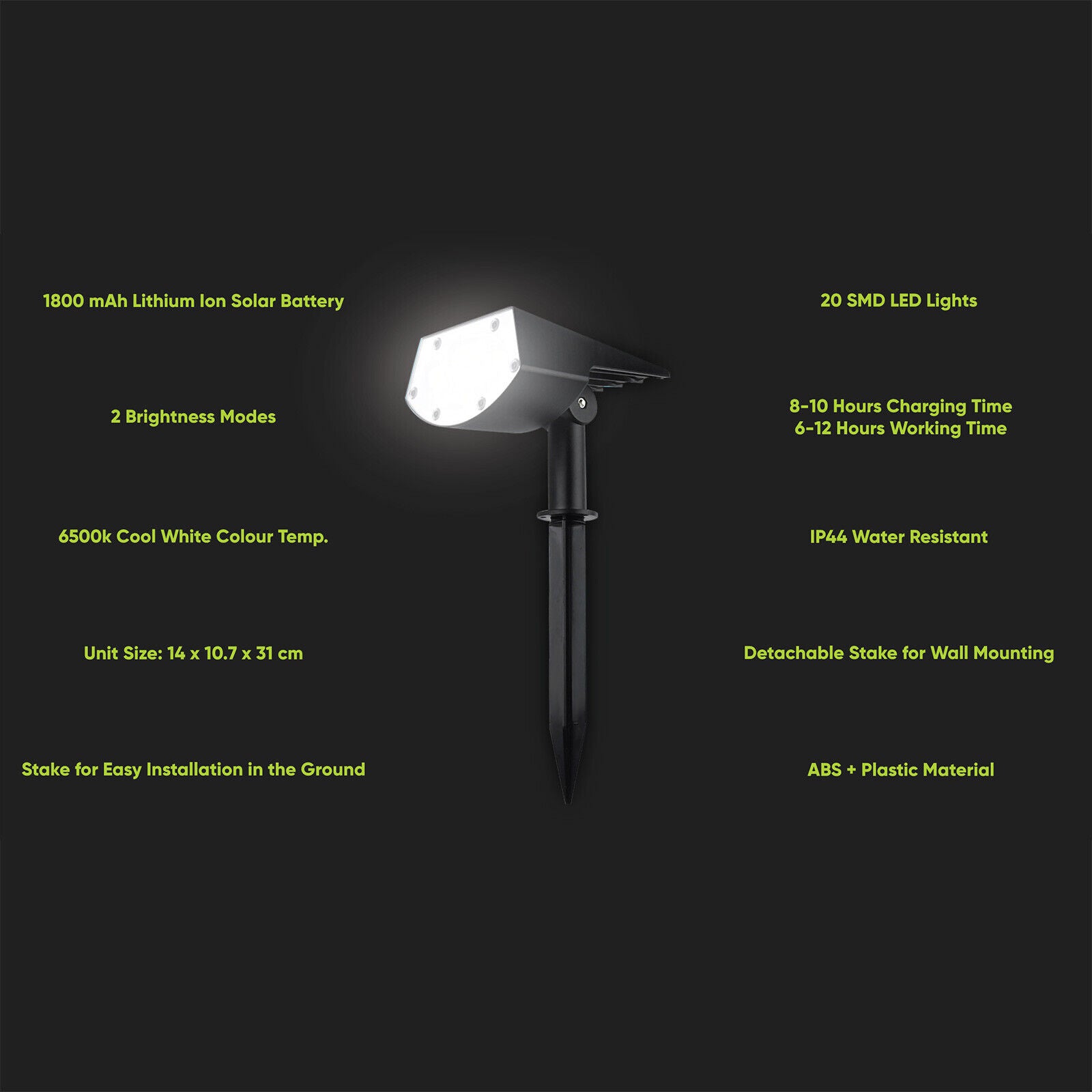 Illuminate your outdoor spaces with the 31cm 2-in-1 Solar Landscape LED Light. Designed for versatility and efficiency, this solar-powered light features a multi-angle adjustable head, making it perfect for lighting up your porch, garden, patio, driveway, pool area, or pathway. With solar power technology, it harnesses sunlight to provide sustainable and eco-friendly lighting, while its weather-resistant build ensures durability in outdoor conditions.