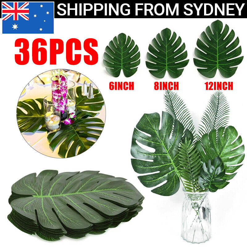 36Pcs Hawaiian Artificial Tropical Palm Leaves Monstera Leaves Rooms Party Decor