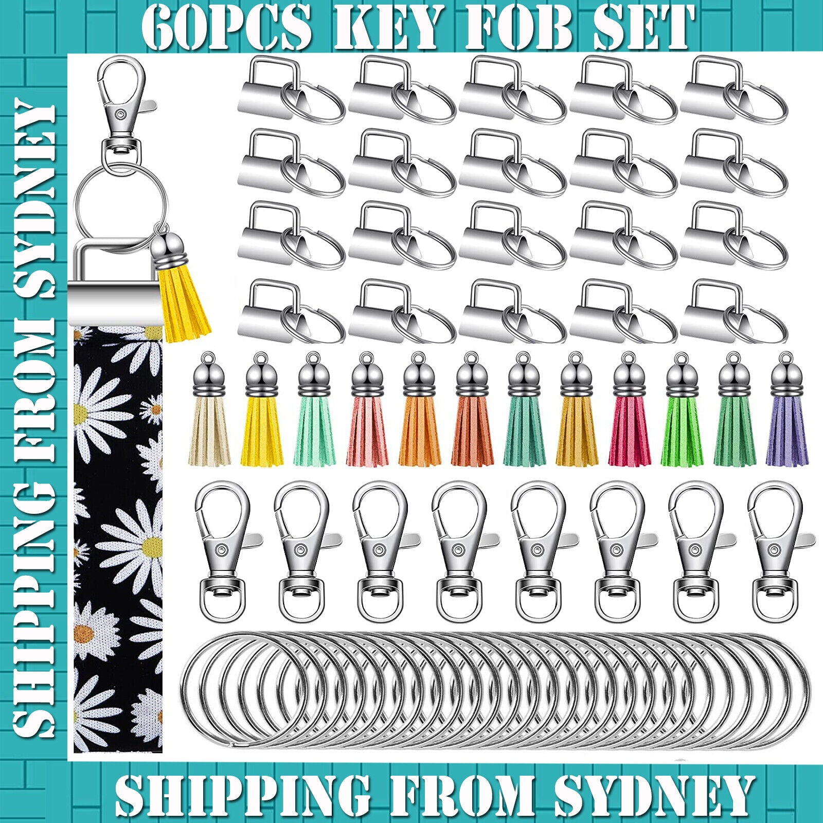 60PCS Swivel Snap Hook Sets Key Fob Hardware keychain Split Ring Tassel Keychain