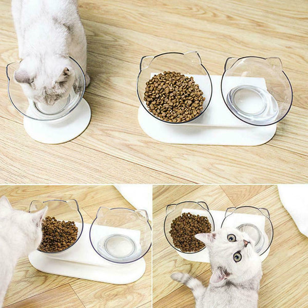 Food Bowl With Stand White Elevated Cat Dog Water Bowl Detachable Pet FeedingsGD