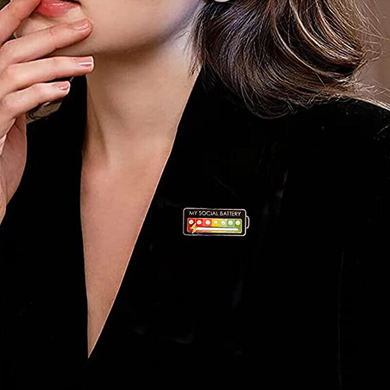 Metal My Social Battery Mood Brooch Pin Funny Interactive Enamel Badge Pins Gift
