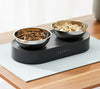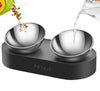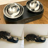 Description: Double bowl design: The large beveled side cat food and water bowl 2 in 1 reduce the...