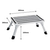 Aluminum caravan step has both strength and stability while being able to fold into a compact unit making...