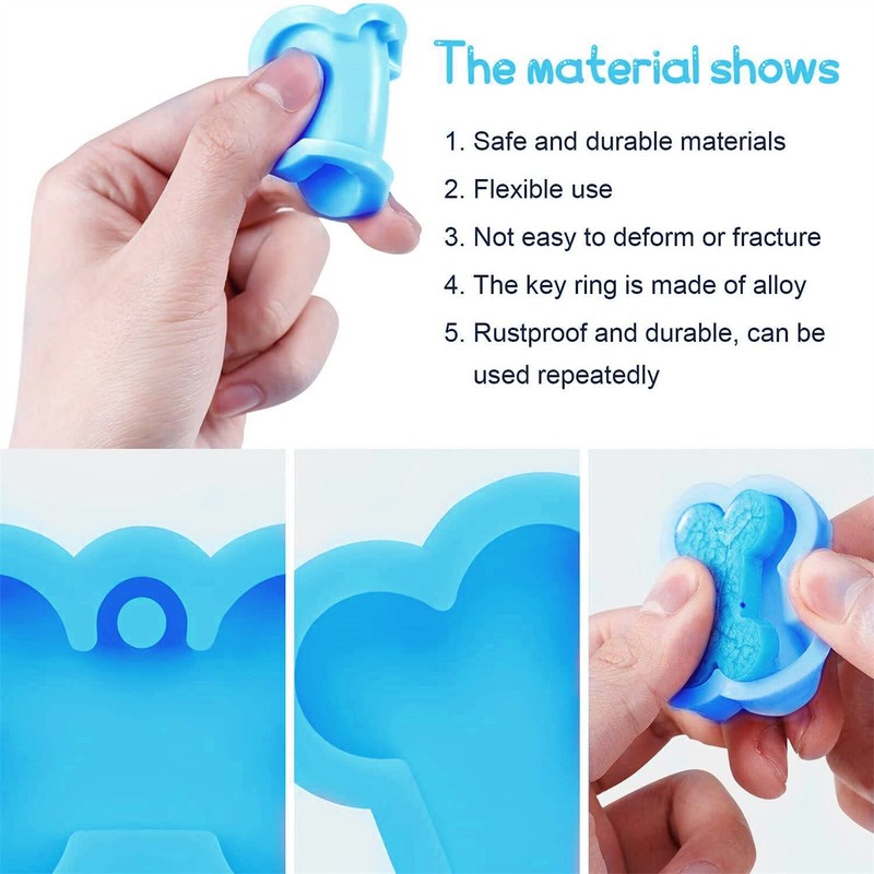 5x Dog Bone Cat Tag Pet Pendant Silicone Resin Molds +10pcs Keychain DIY Tool AU