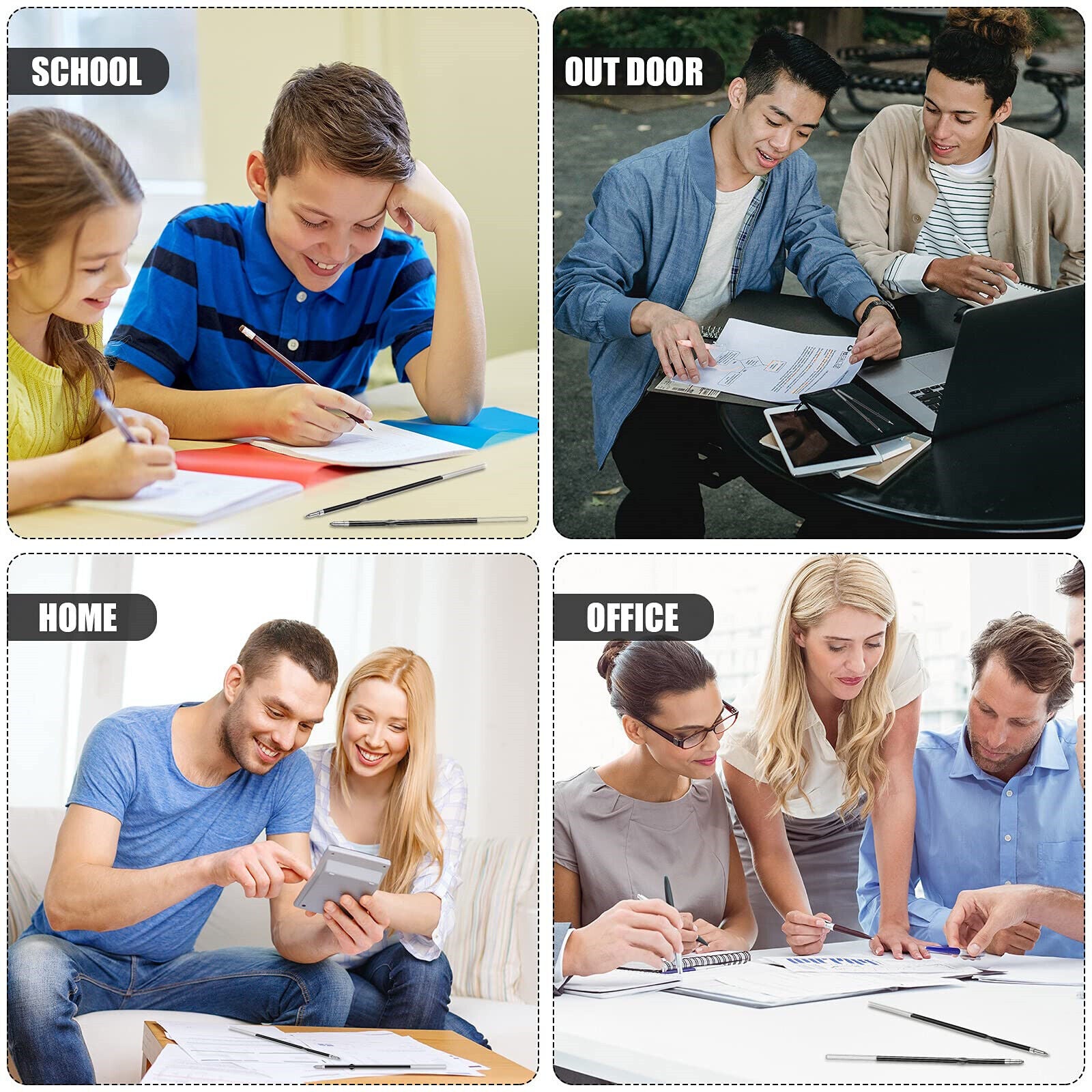 Refills for Retractable Press Ballpoint Pens Black Blue Writing Instrument