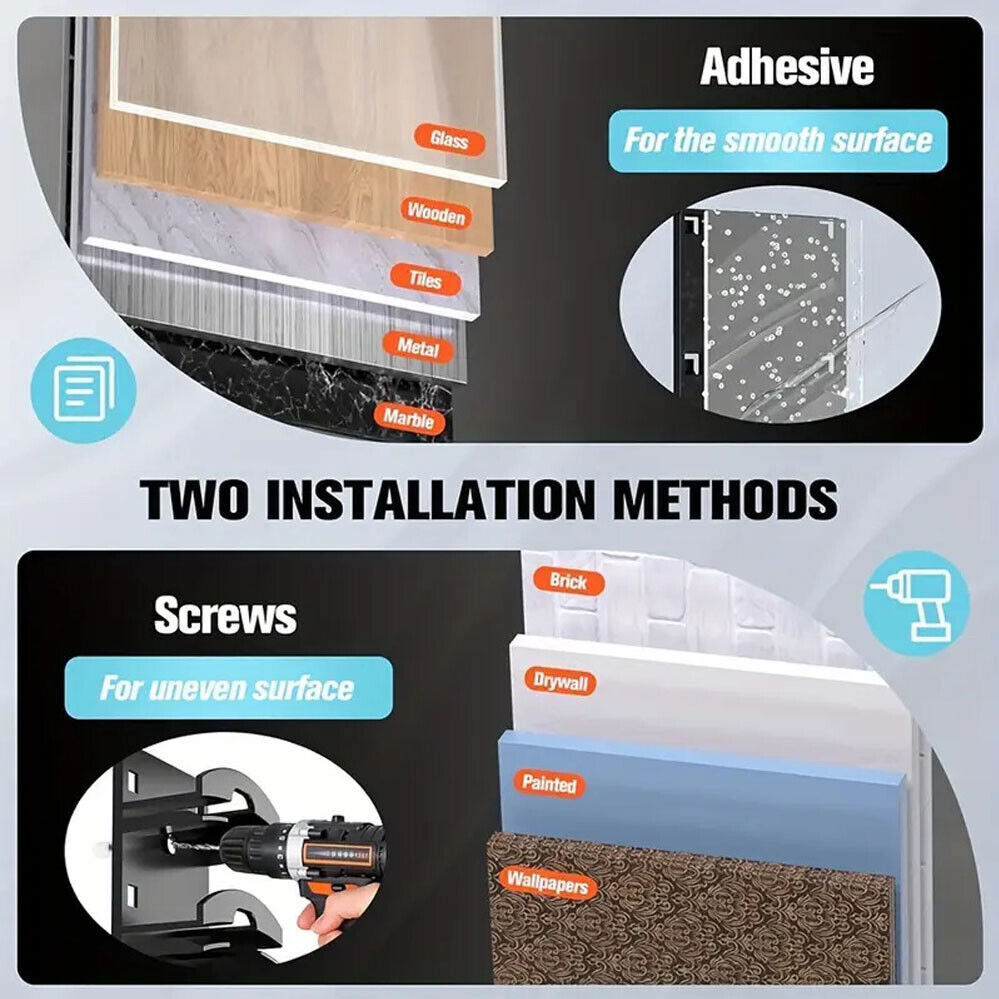 【Easy Installing】 With adhesive backing or screw installation, mount the Hat Rack for Wall on smooth surfaces; opt for drilling on rough surfaces with two installation methods provided