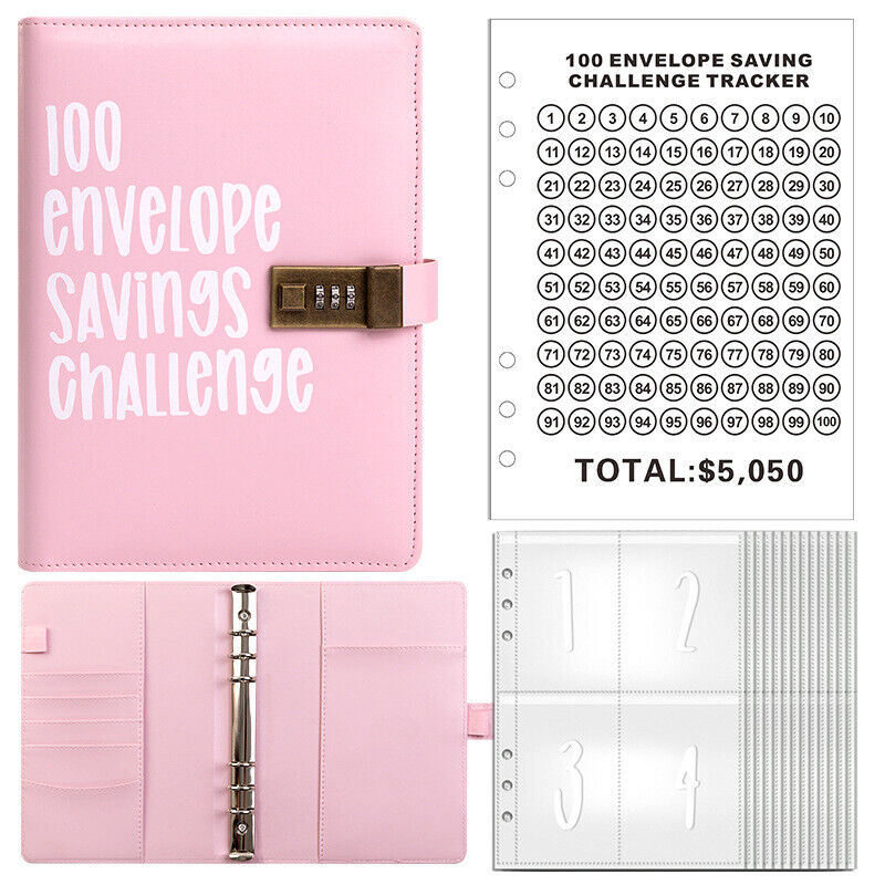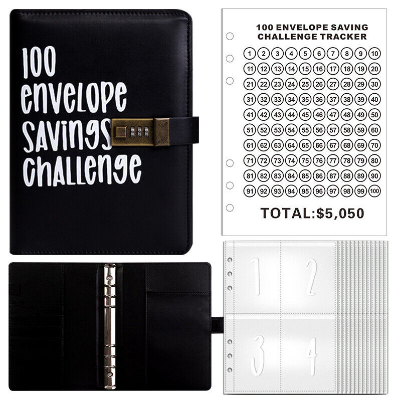 100 Days-Envelope Saving Money Book Budget Savings Challenge Binder with Lock