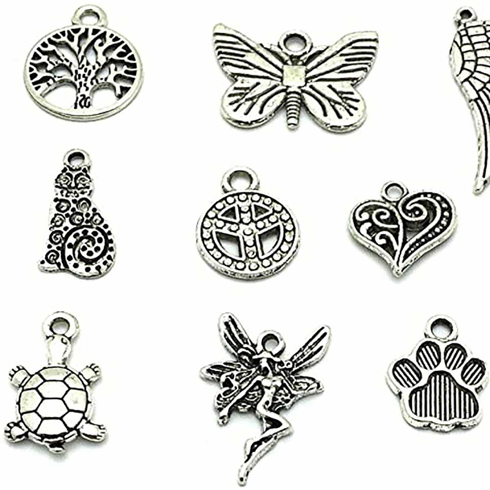 100 pcs Jewelry Making Silver Charms Mixed Wholesale Bulk Smooth Pendants DIY
