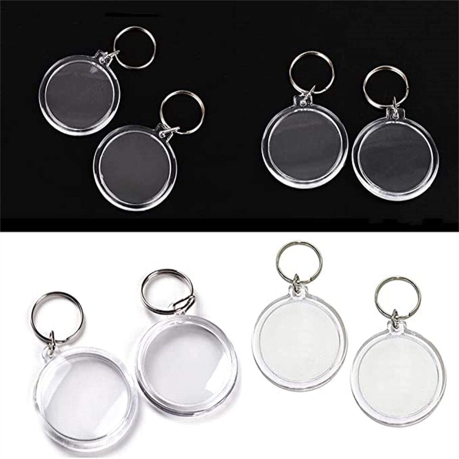 100Pcs DIY Clear Acrylic Blank Photo Picture Frame Key Ring Keychain Keyring NEW