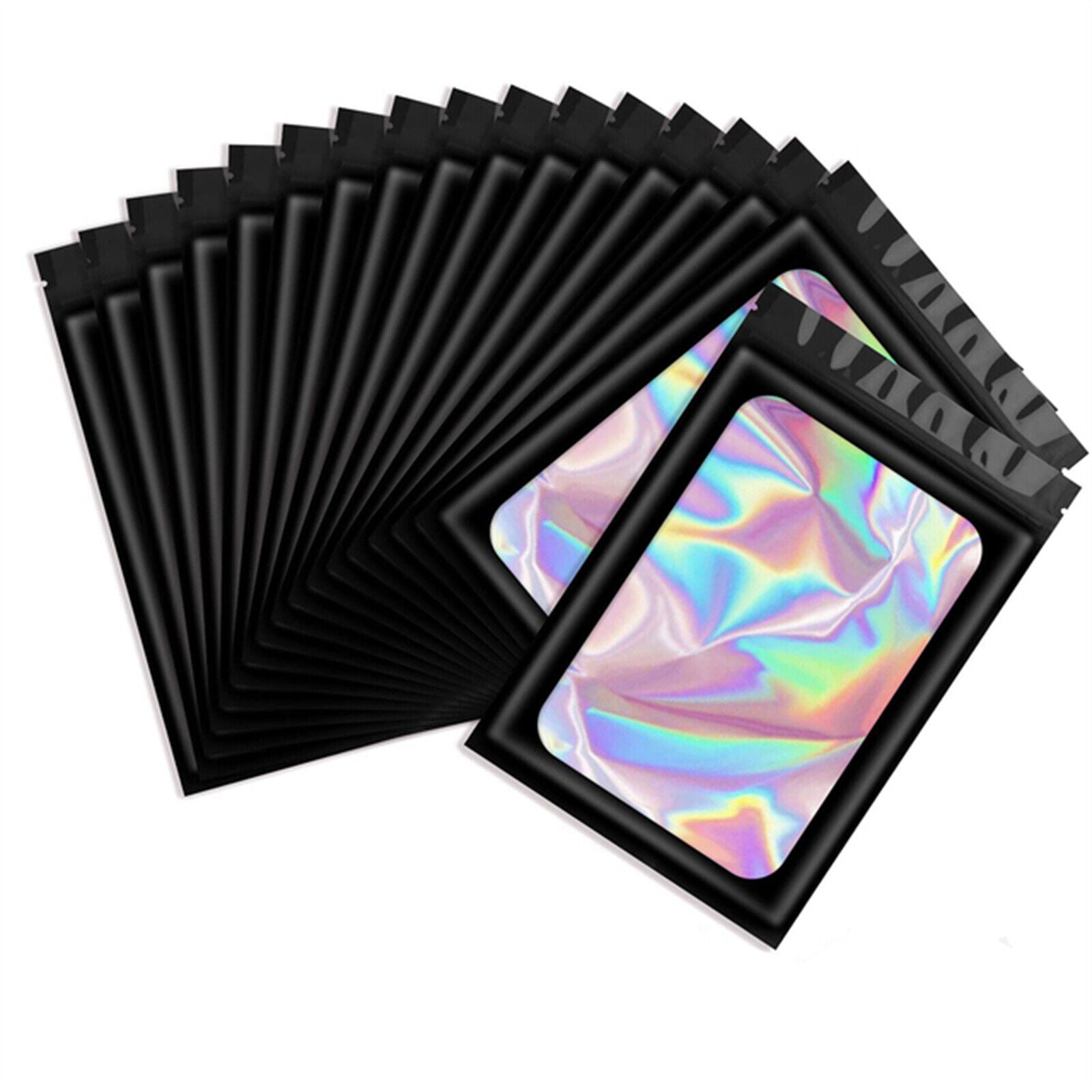100PCS Mylar Pouch Lock Food Storage Foil Bags Smell Proof Bags Heat Seal Black