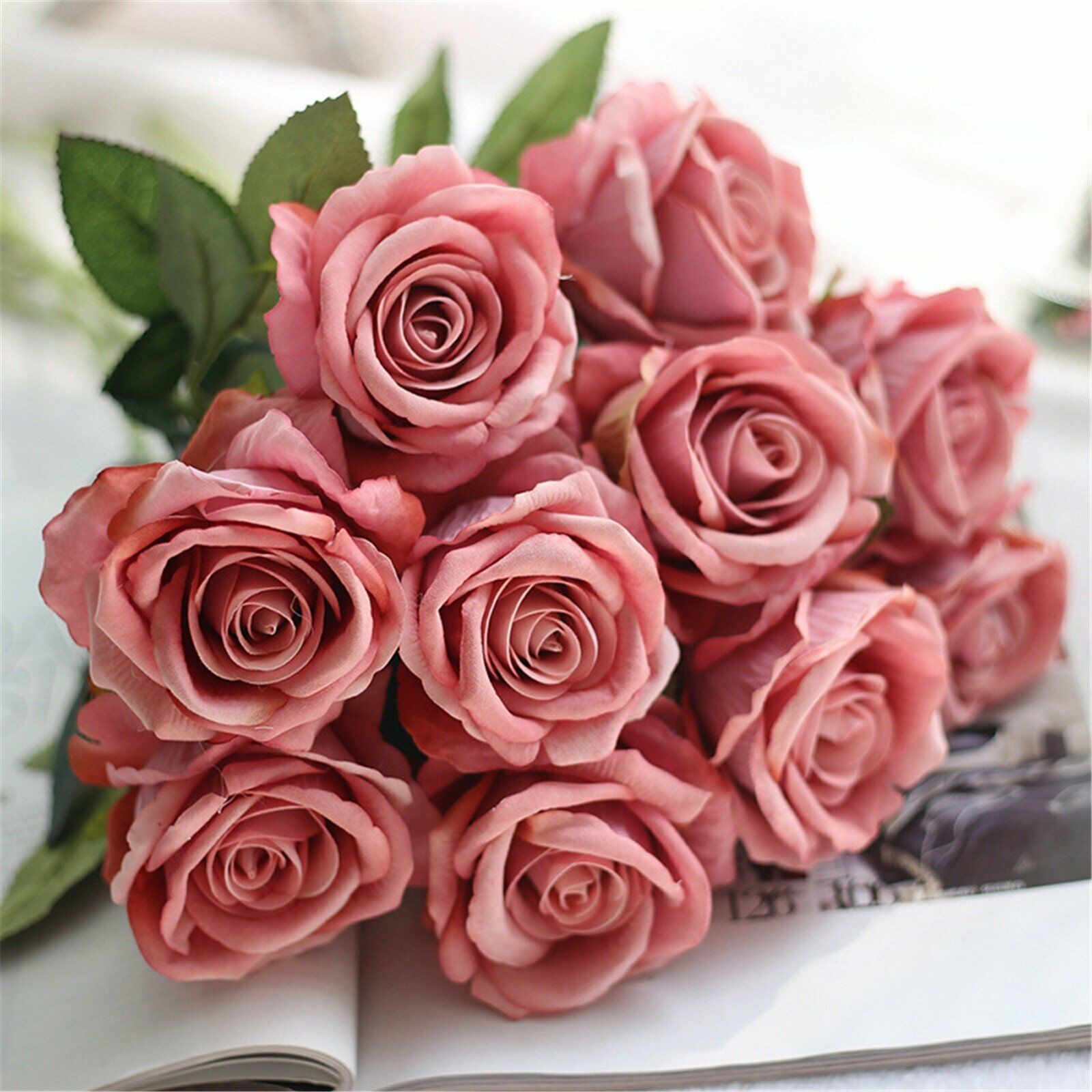 10pcs Artificial Velvet Flowers Rose Flower arrangement Wedding Event Party  Dec