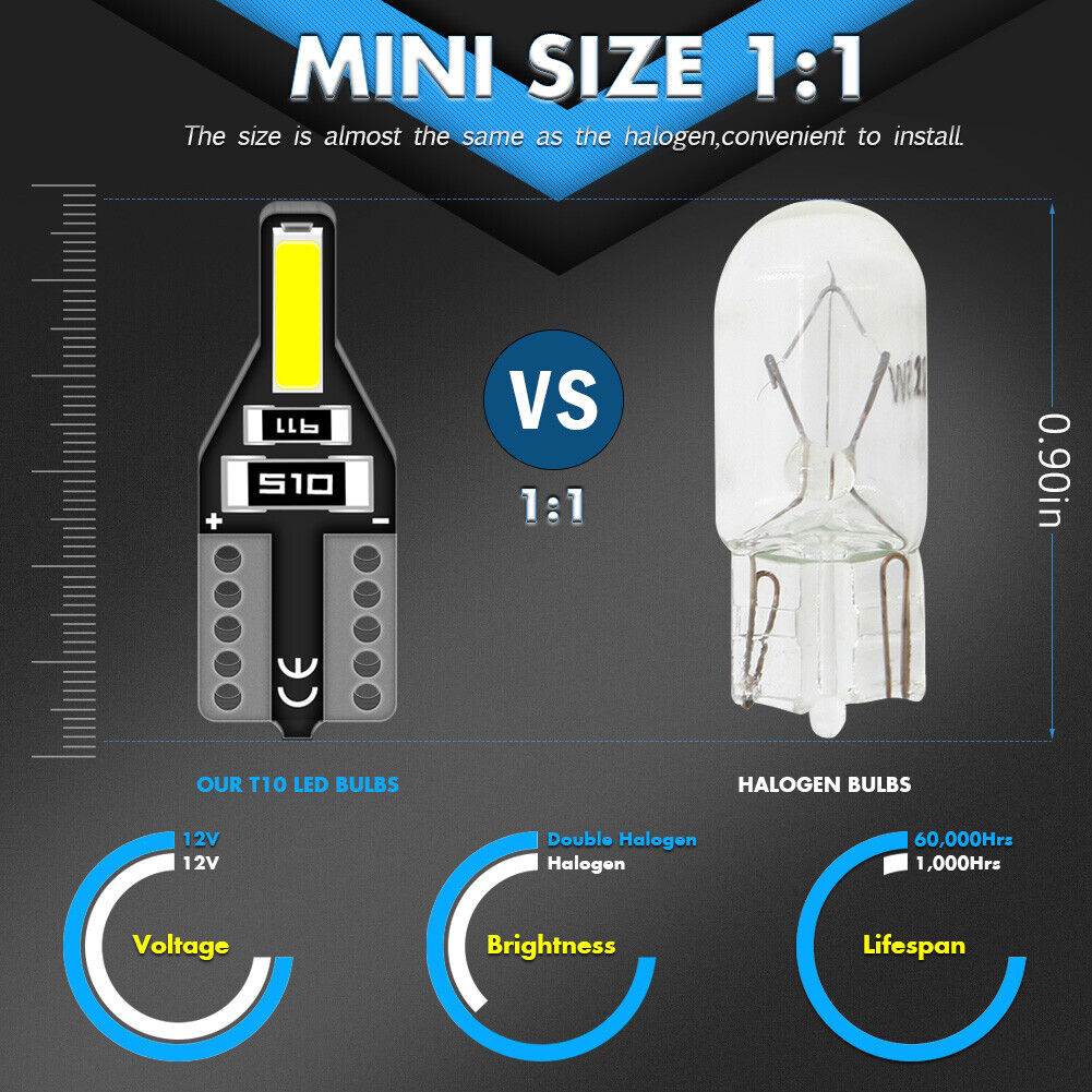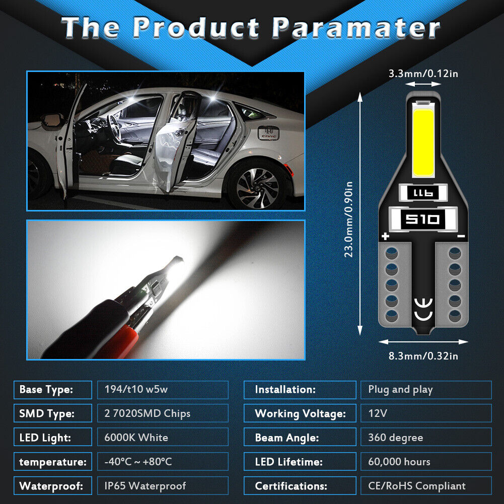 10pcs Canbus T10 LED 7020 SMD White Car Side Wedge Light Globe Bulbs 194 168 W5W