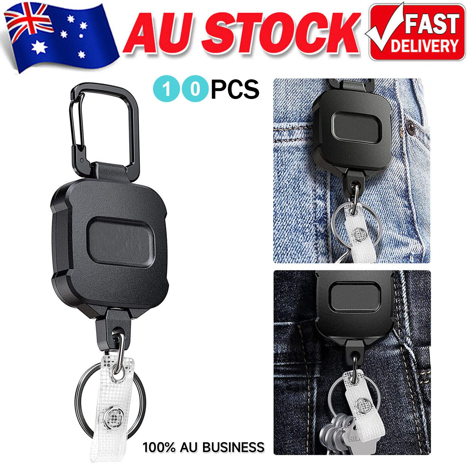 10PCS Heavy Duty Metal Retractable Carabiner Key Chain Ring Badge Steel Cord New