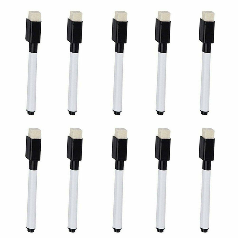 10PCS Whiteboard Marker Pens Black Dry Wipe Magnetic Erase Pen Eraser Lid Cap AU