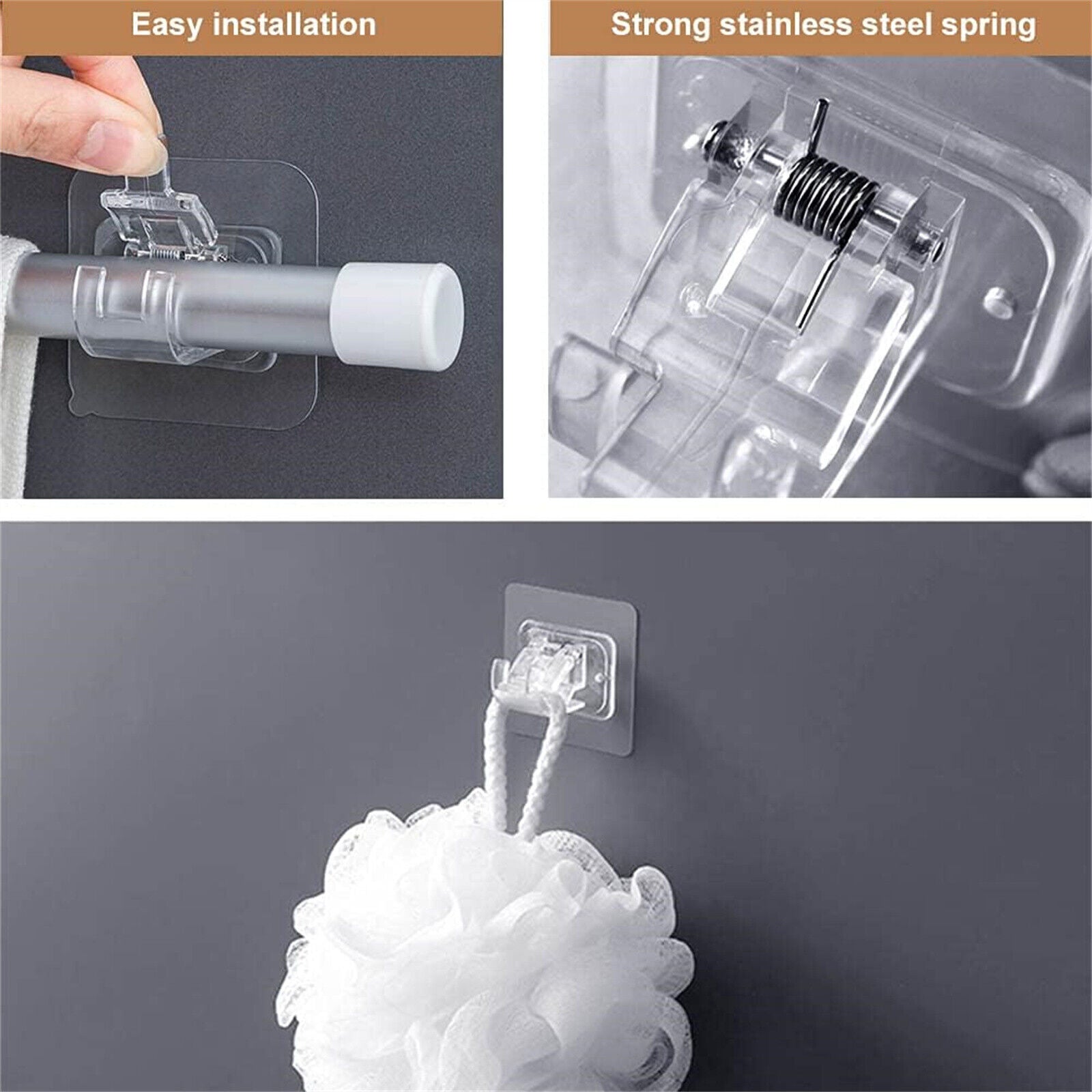 10X Nail Free Curtain Rod Clip Self Adhesive Curtain Adjustable Rod Holder Hooks