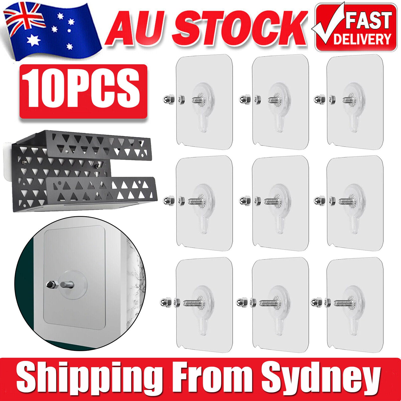 10x Punch-Free Self Adhesive Screw Sticker Wall Hanging Sucker Hook Nail Holder