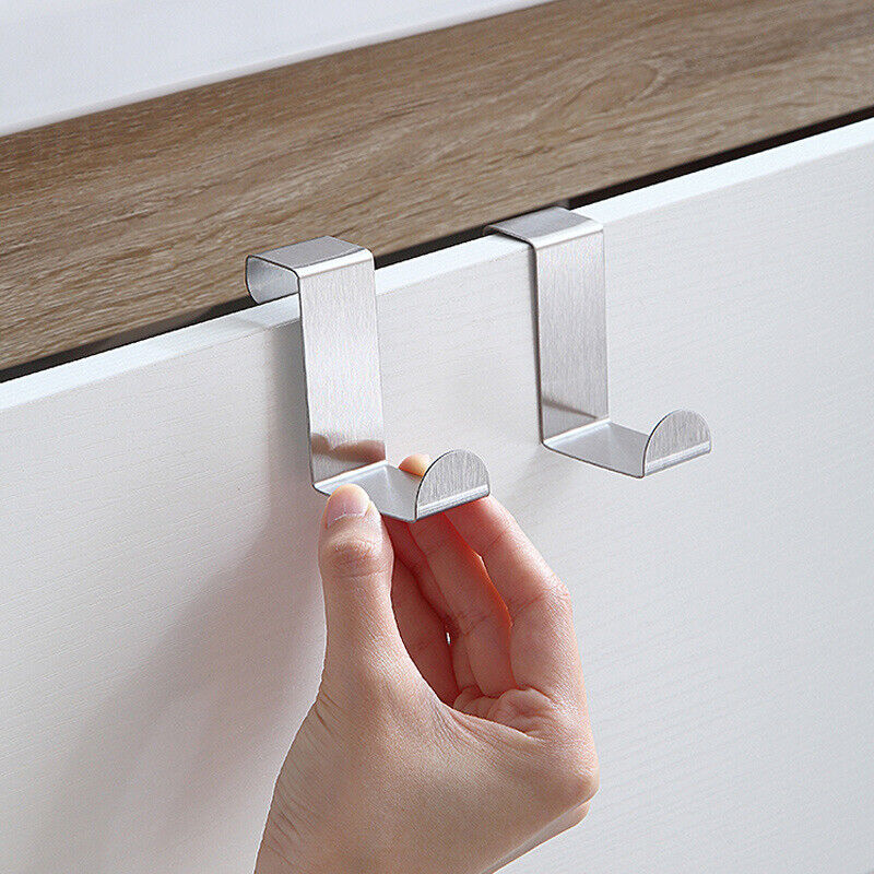 10x Stainless Steel Over the Door Hooks Kitchen Towel Holder Clothes Bag Hanger