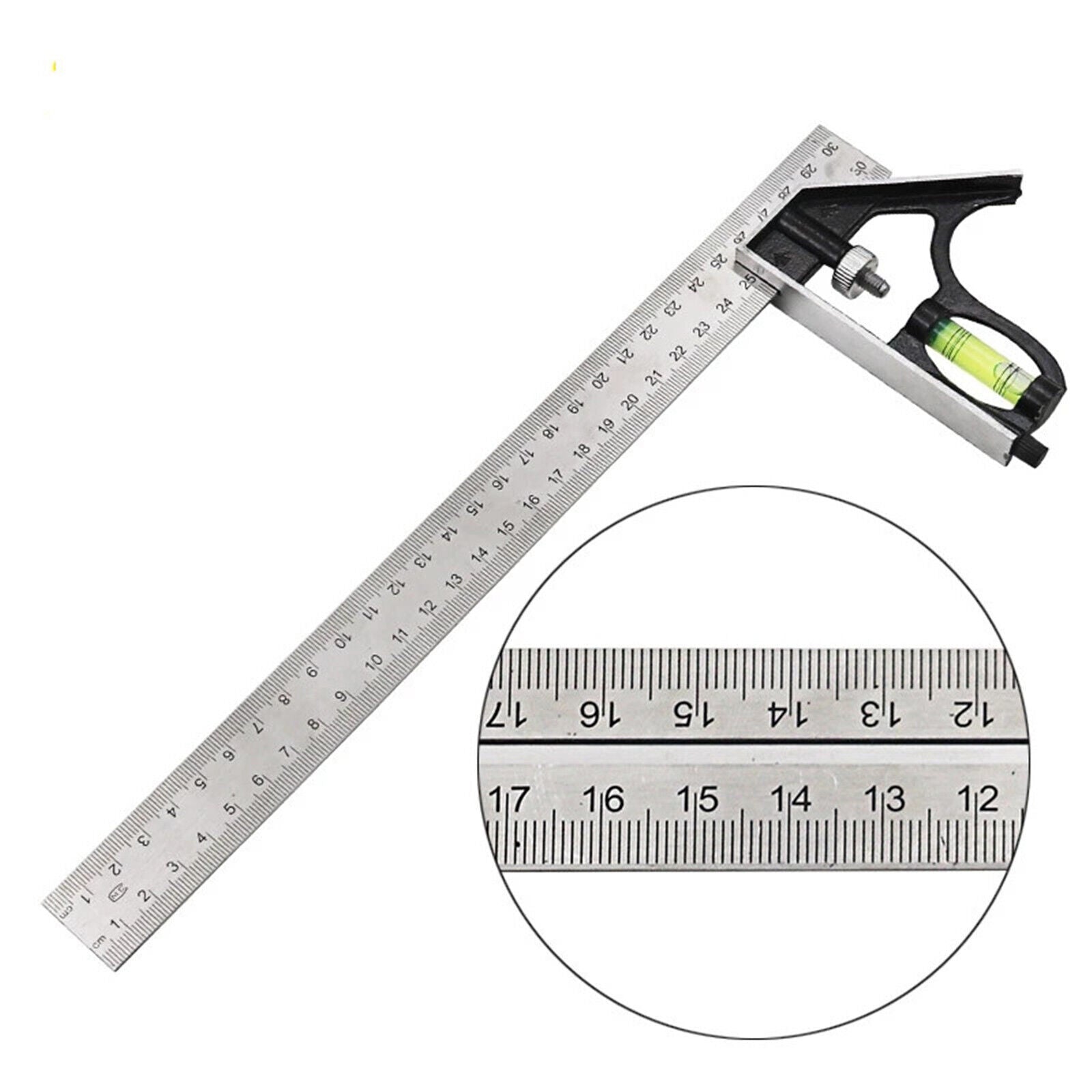 12" 30cm Combination Angle Square Type A Ruler Spirit Level Adjustable Measure