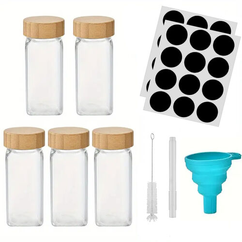 120ML Glass Spice Jars Lid Herb Seasoning Condiment Square Kitch