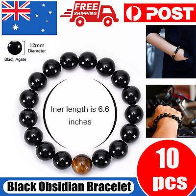 12mm Chakra Bracelet Natural Healing Bead Black Obsidian And Tiger Eye