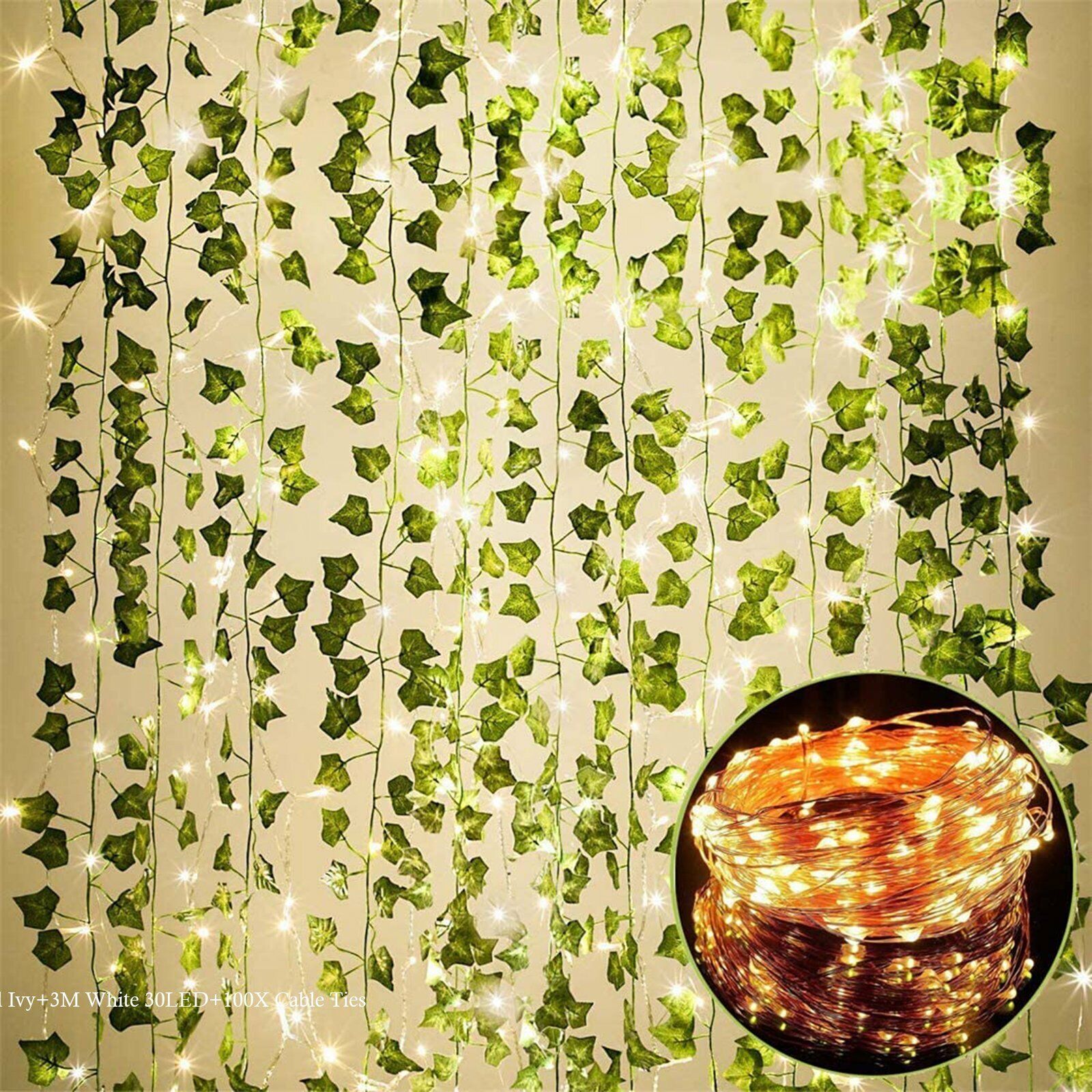 12PCS 3M LED Artificial Ivy Flower 3M Fairy String Lights Garland Wedding Xmas
