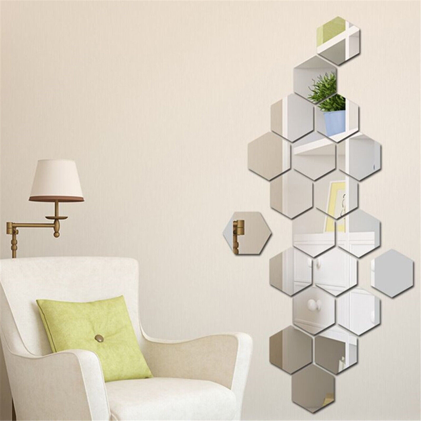 12Pcs Mirror Hexagon Removable Acrylic Wall Stickers Art DIY Home Decor Sple AUS