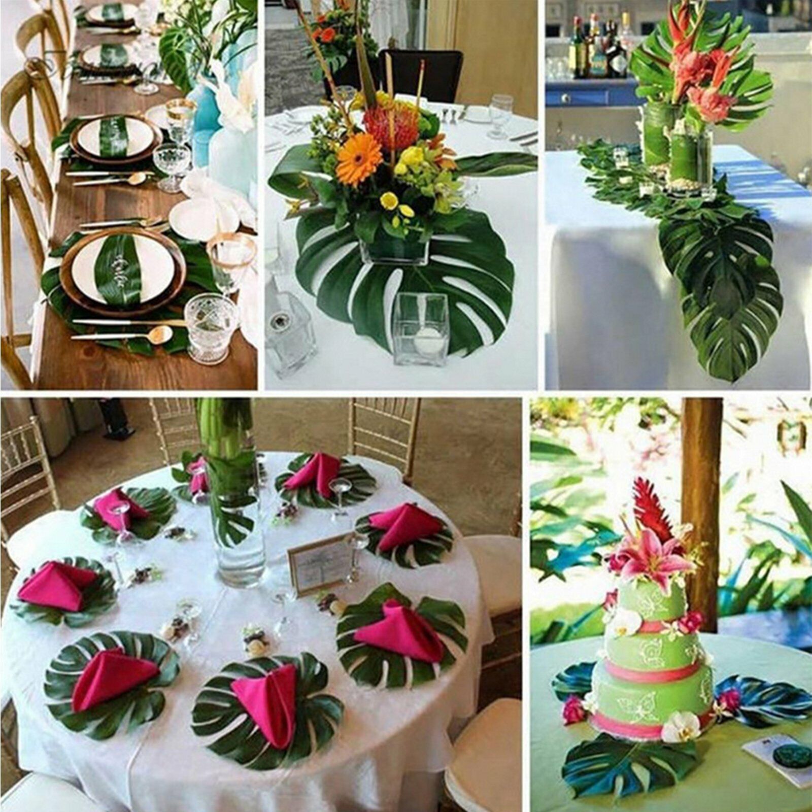 12x Large Tropical Hawaiian Artificial Palm Monstera Leaves Party Fake Luau Deco
