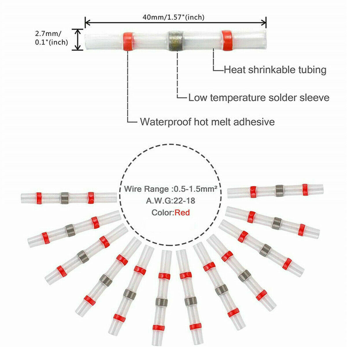 150PCS Solder Seal Sleeve Heat Shrink Butt Wire Connectors Waterproof Terminals