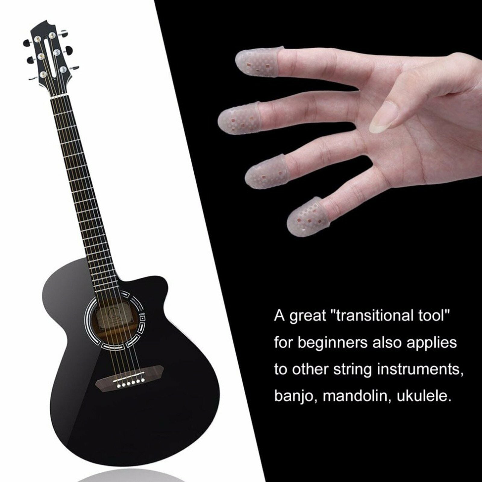 -Fingertip protectors / guards, allow for PAINLESS play. You can play or practice longer while your fingers continue to harden.