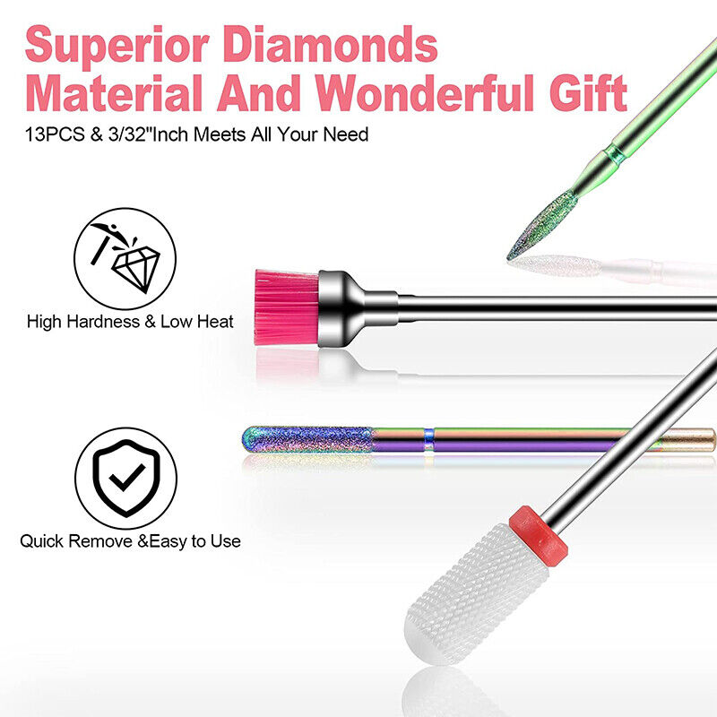 - Totally 16PCS different nail drill bits fit most electric nail drill machines that use 3/32" drill bits. - Various shapes and sizes meet different kinds of needs.