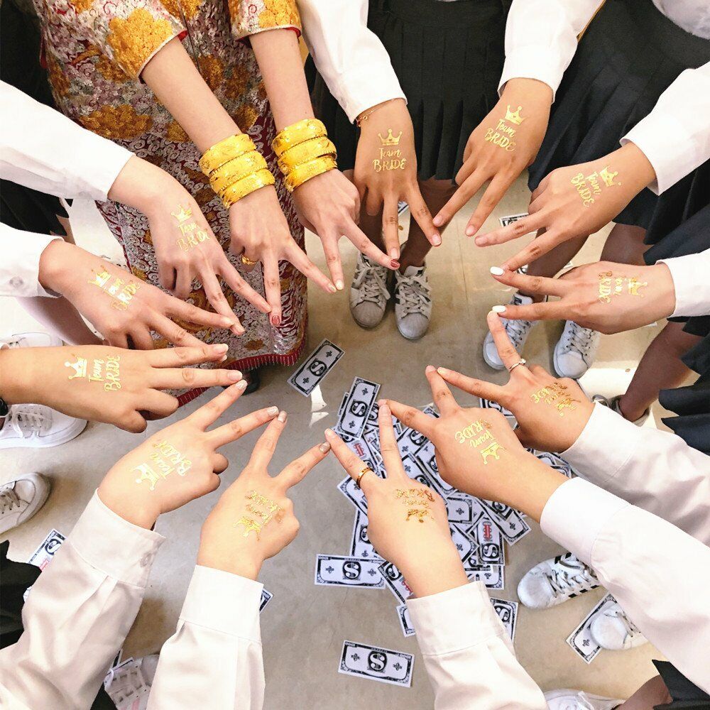 1x New Hens Party Temporary Tattoo Sticker Bride Team Tribe Metallic Tattoos DIY