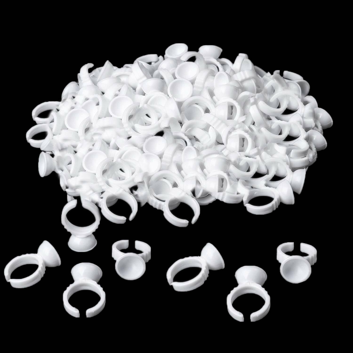 200Pcs Adhesive Glue Ring Pallet Holder Lash Extensions Fan Cups Tattoo Pigment