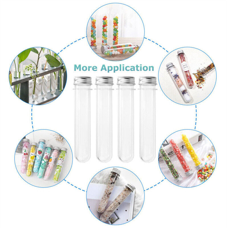 200PCS Clear Plastic Test Tube Screw Cap Bath Salt Container Jelly Candy Bottle