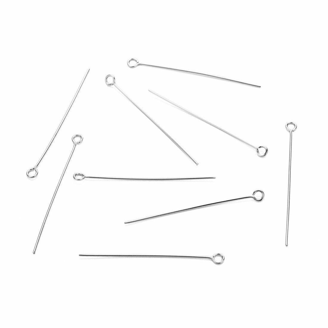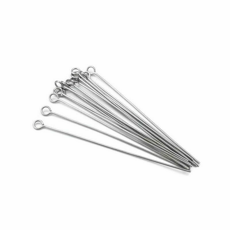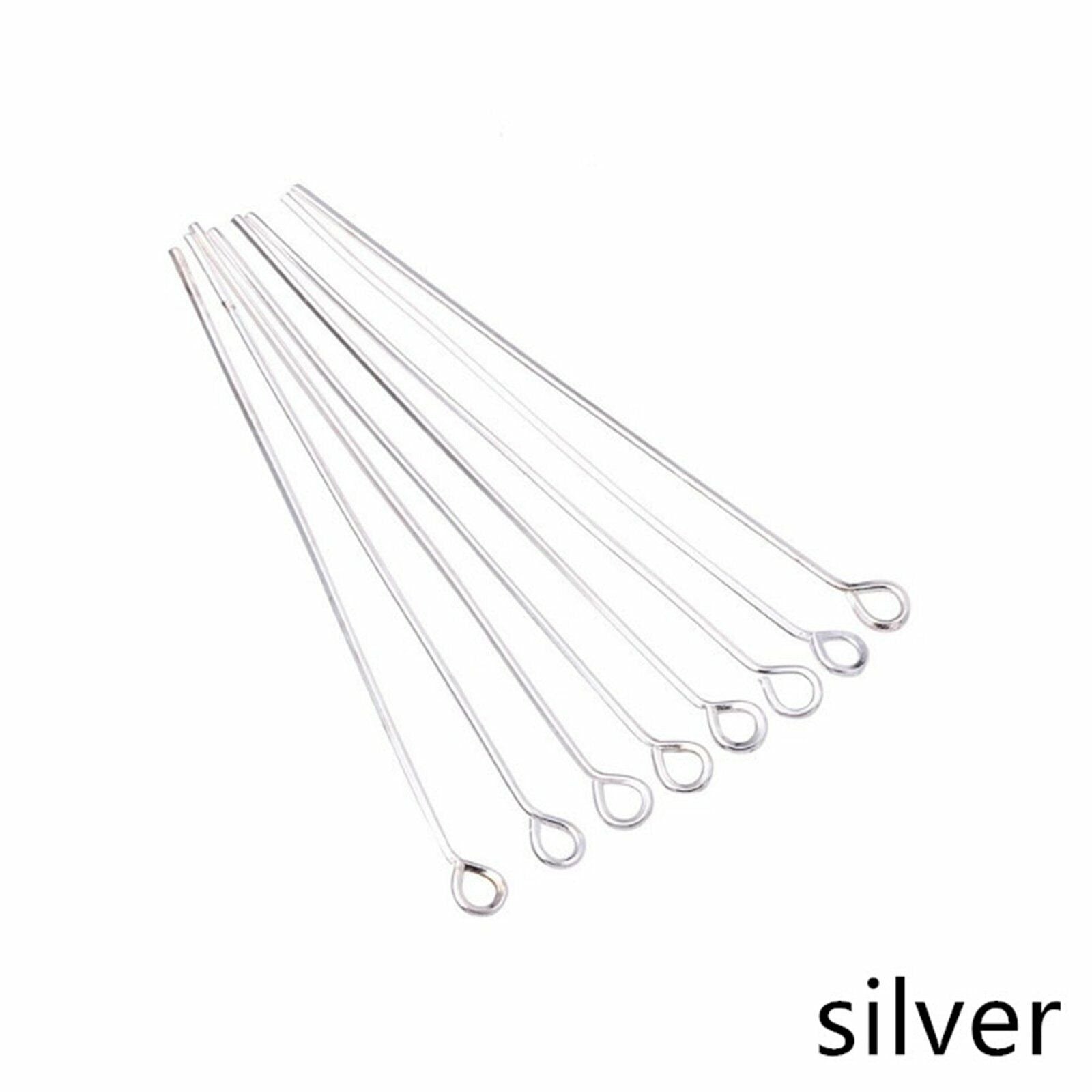 200pcs Eye Pins Silver Plated Alloy 50mm long 0.7mm dia Jewellery Making Earring