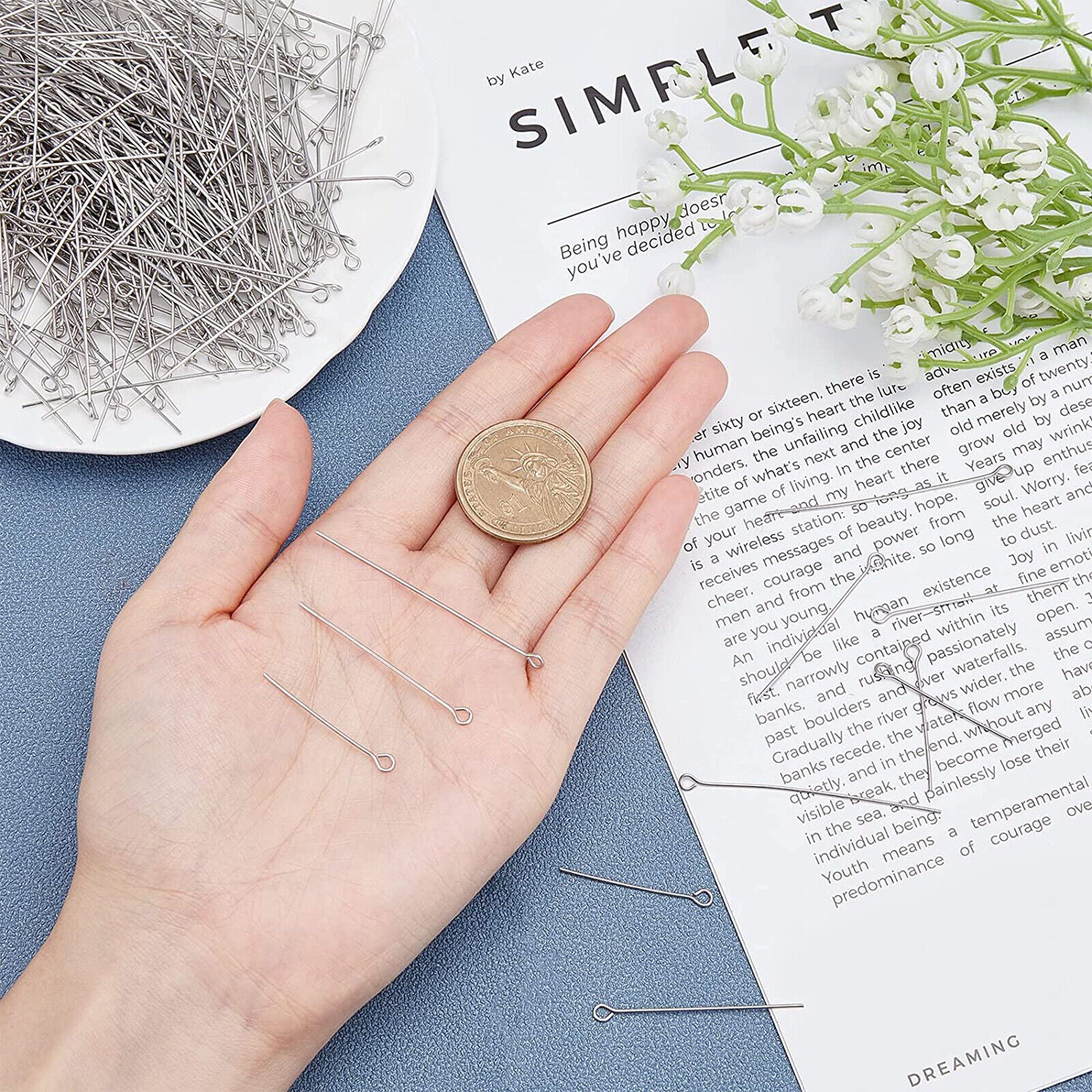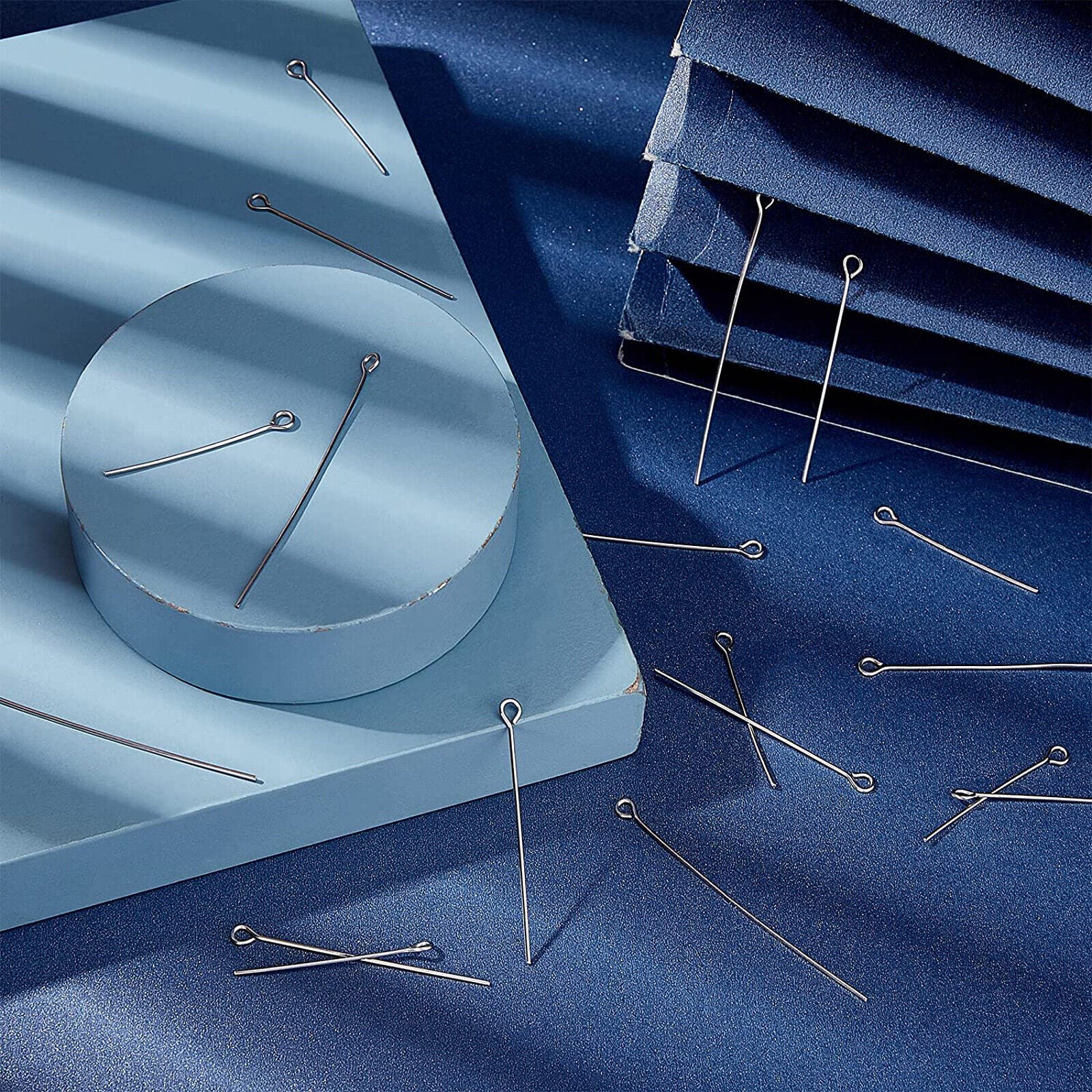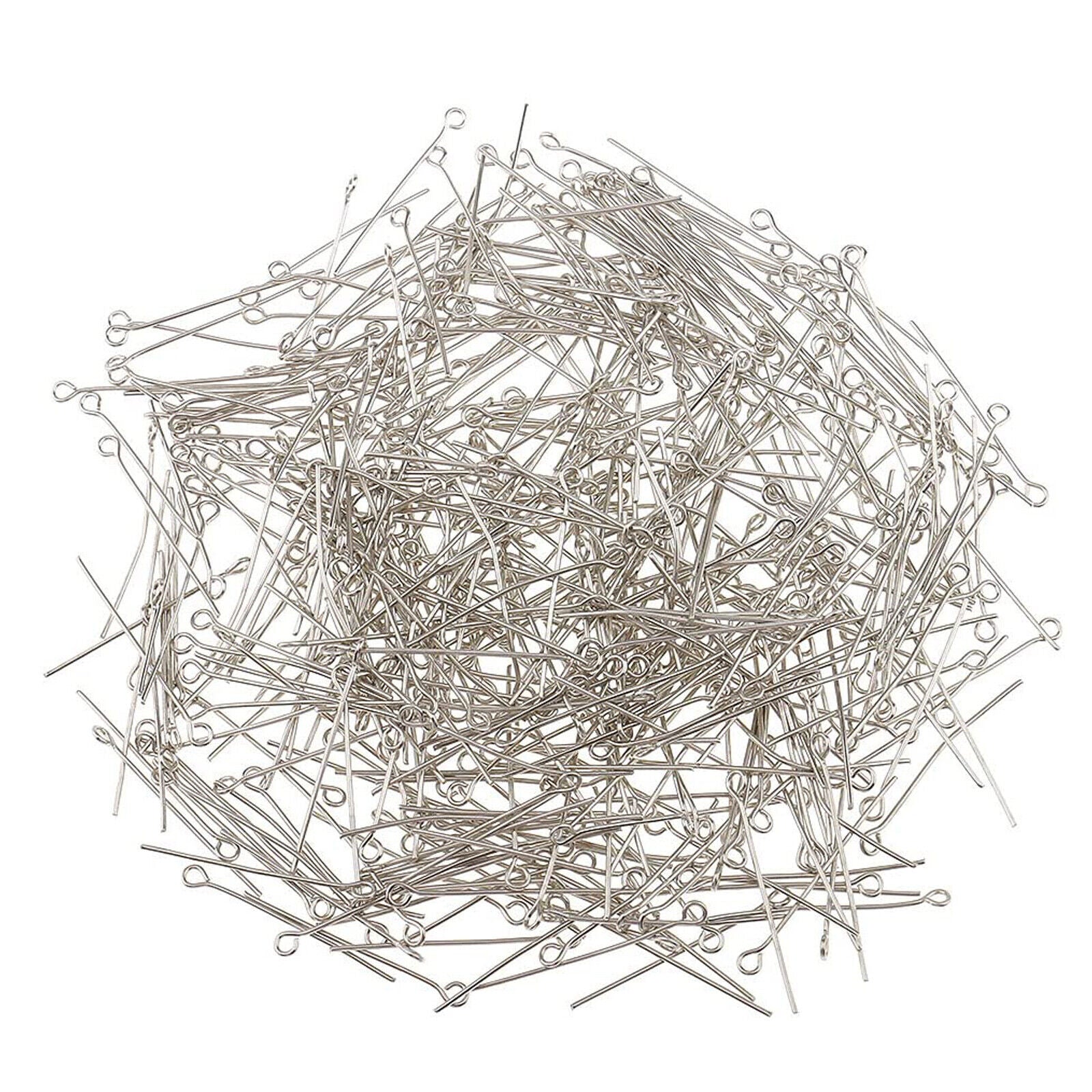 200pcs Eye Pins Silver Plated Alloy 50mm long 0.7mm dia Jewellery Making Earring