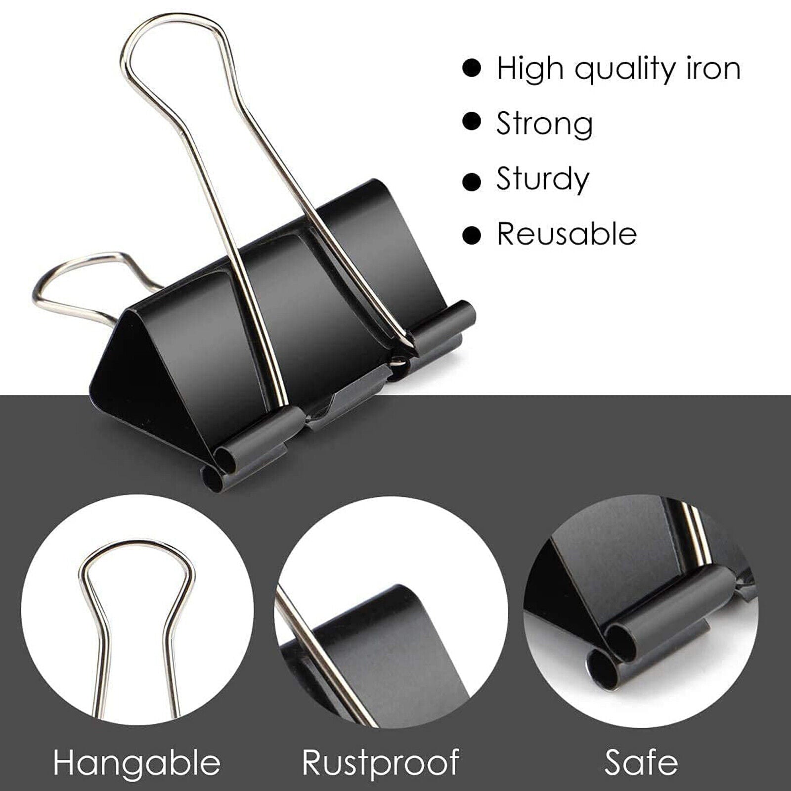 20PCS 5 Sizes Foldback Binder Clips Fold Back Clips Black Bulldog Clip Document