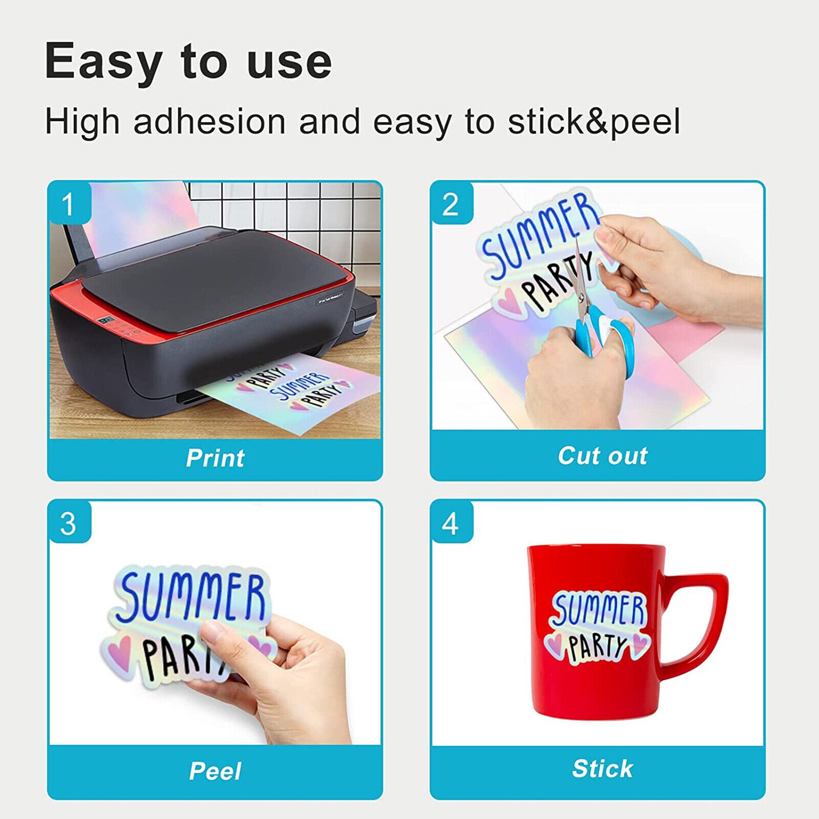 20PCS A4 Holographic Glossy Self Adhesive Sticker Paper Label Inkjet Printer AU