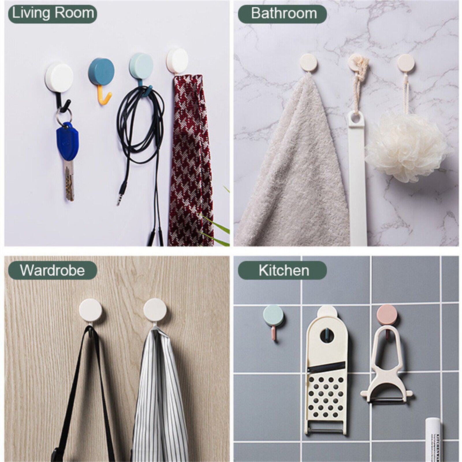 20PCS Strong Self Adhesive Hook Kitchen Bathroom Stick On Wall Door Hanger AU
