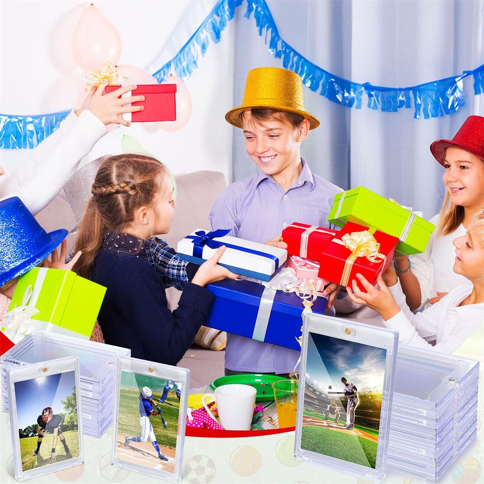Sized to fit standard size (6.4 x 8.9cm) sports trading cards or gaming cards up to 35pt in thickness