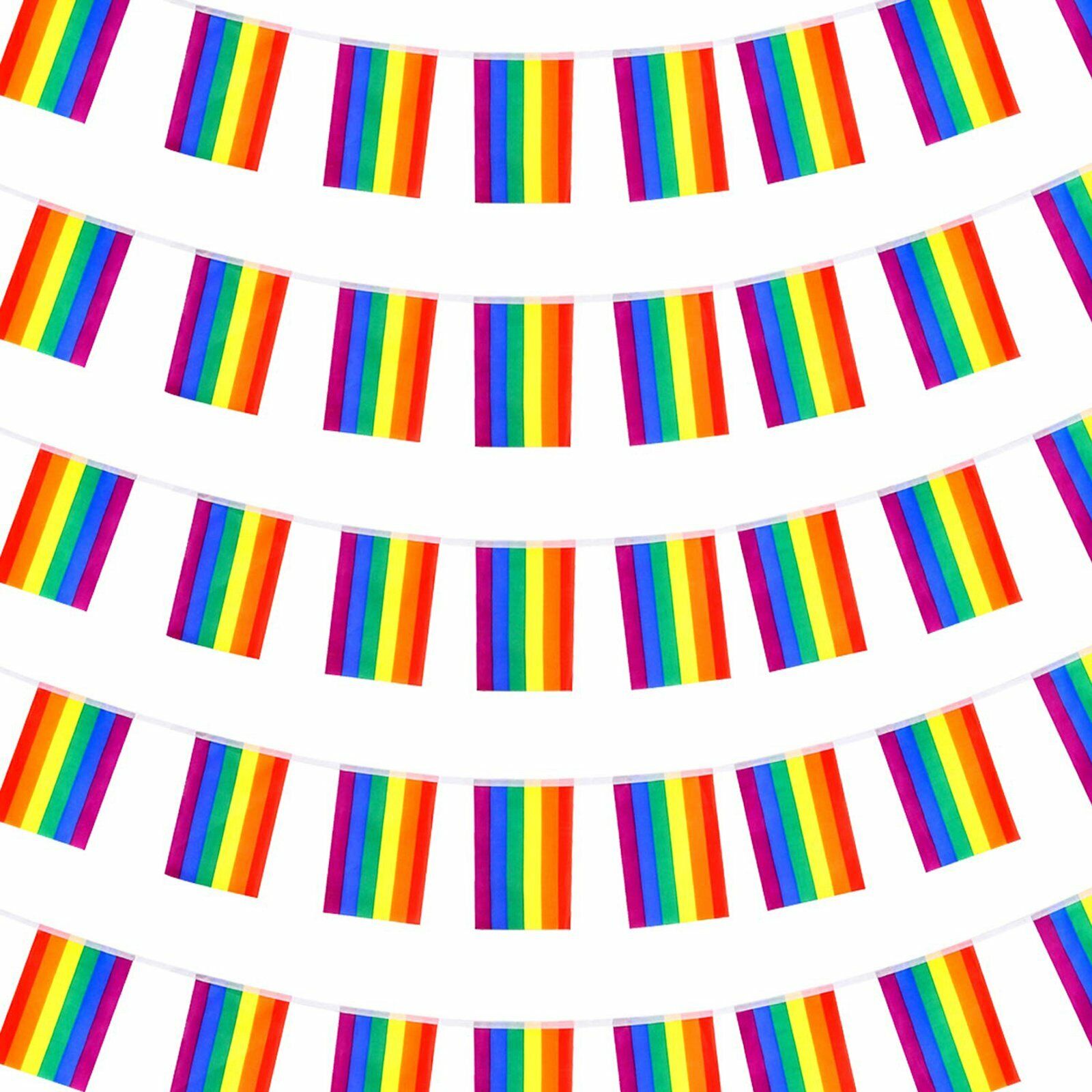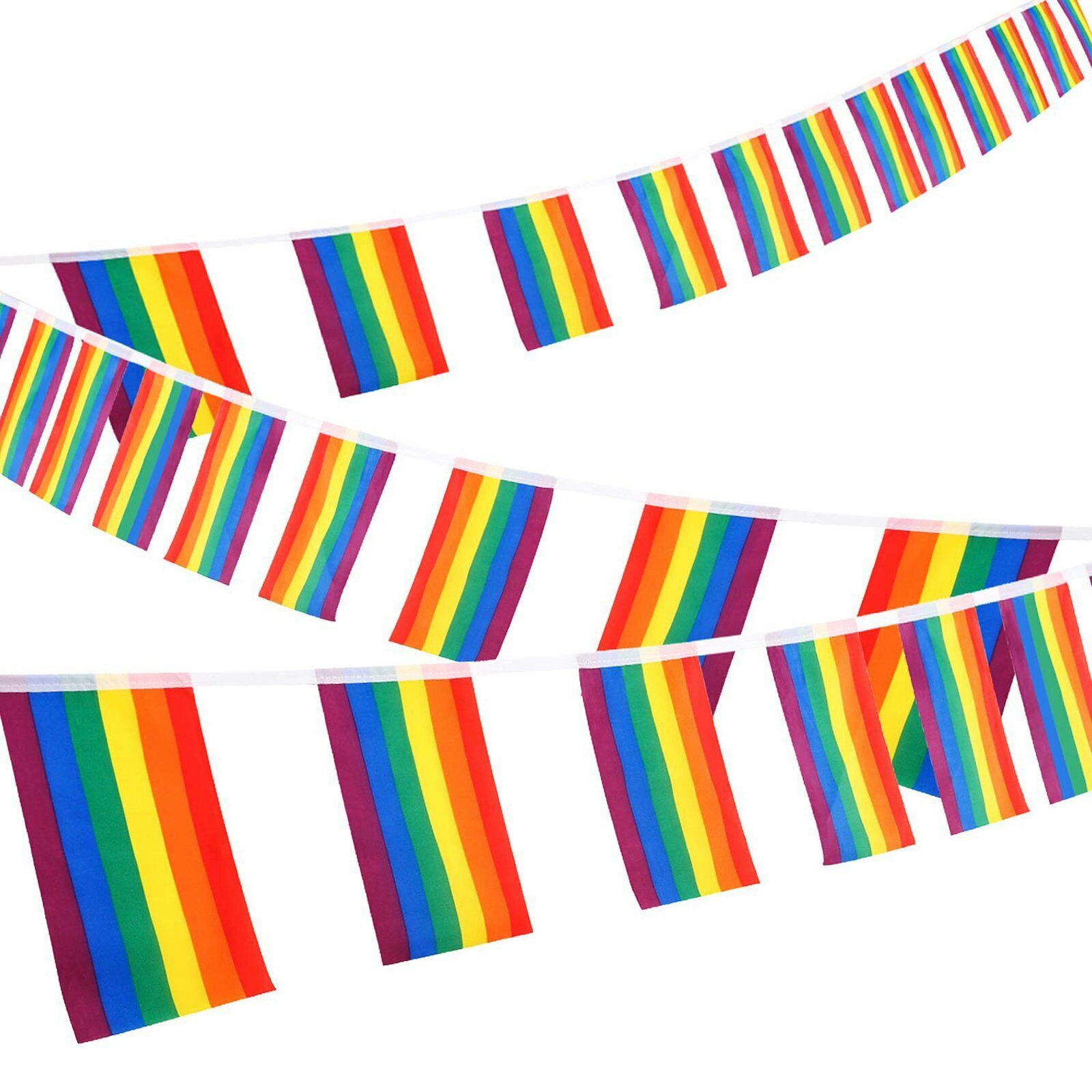 20x 5.5M Rainbow String Flag Gay LGBT Lesbian Pride Mardi Gras Party Banner Outd