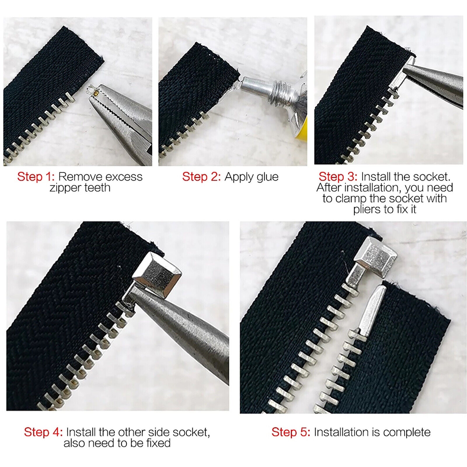 20X Metal Zipper Repair Stopper Open End Tailor Sewing Tool Zip Bottom Fix Kit