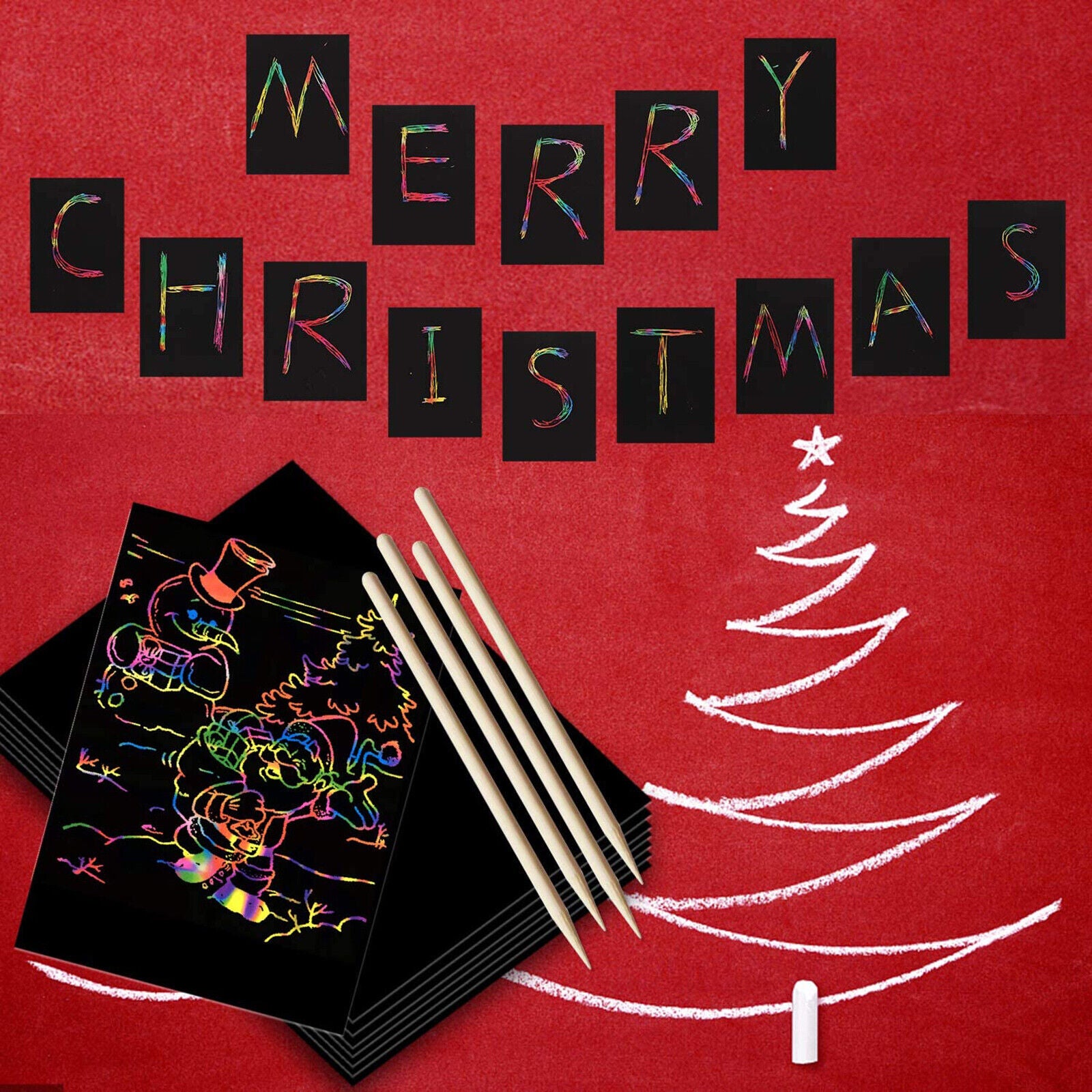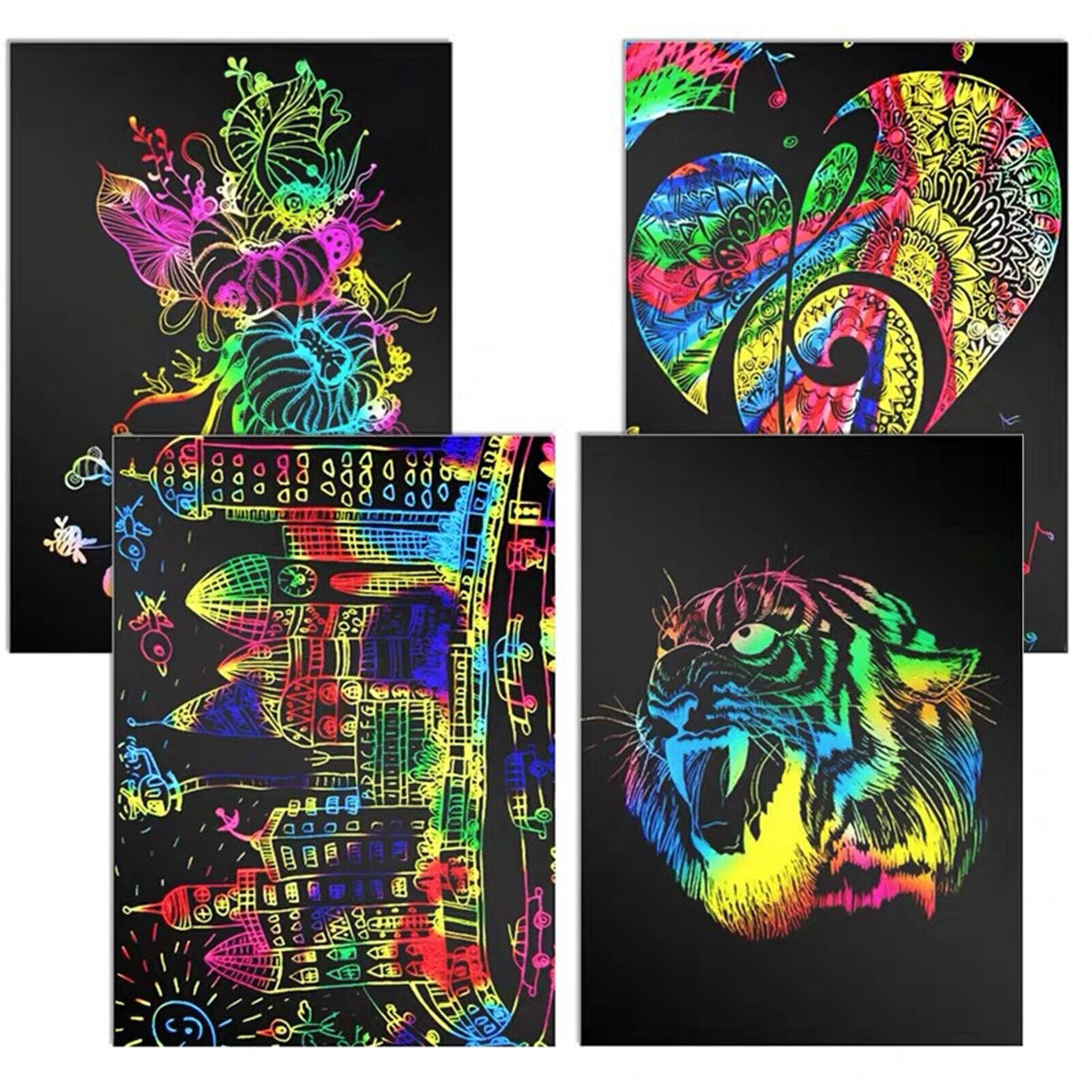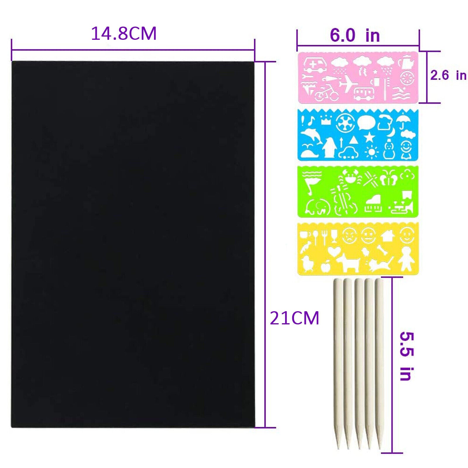 20X Sheets Scratch Paper Creative Art Rainbow Paper Sketch Book+Bamboo Pen Ruler