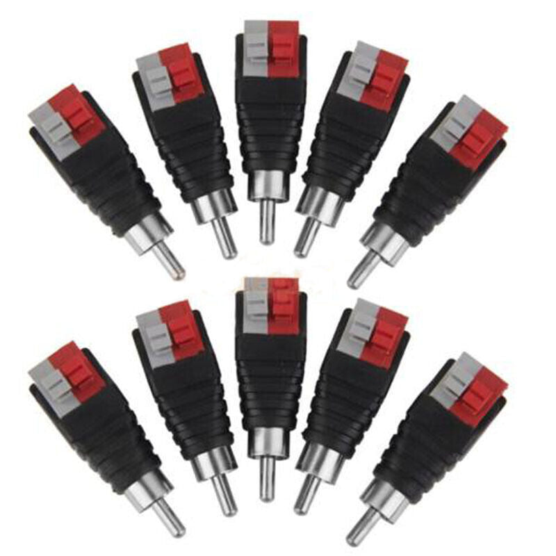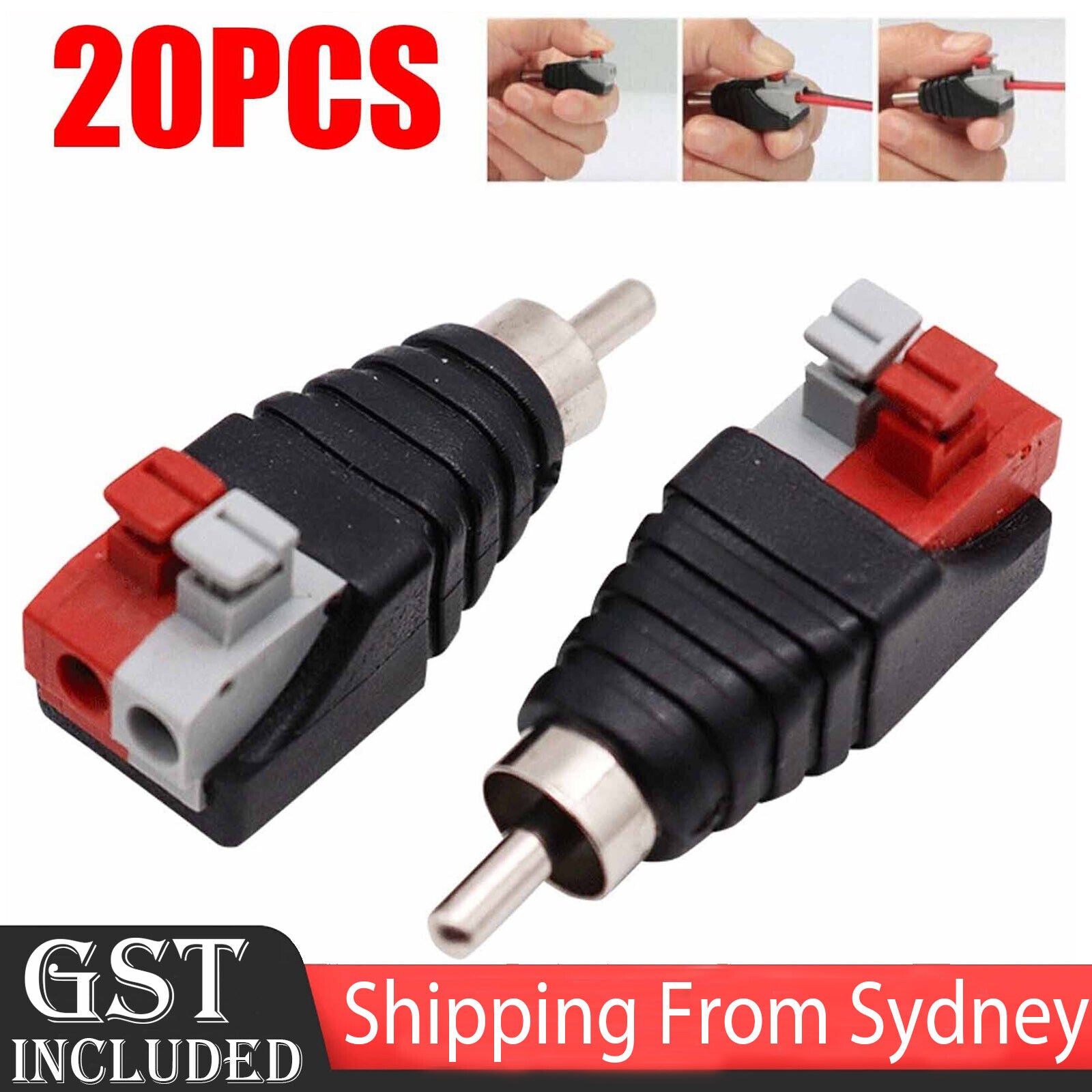 20X Speaker Wire A/V Cable to Audio Male RCA Connector Adapter Jack Press Plug