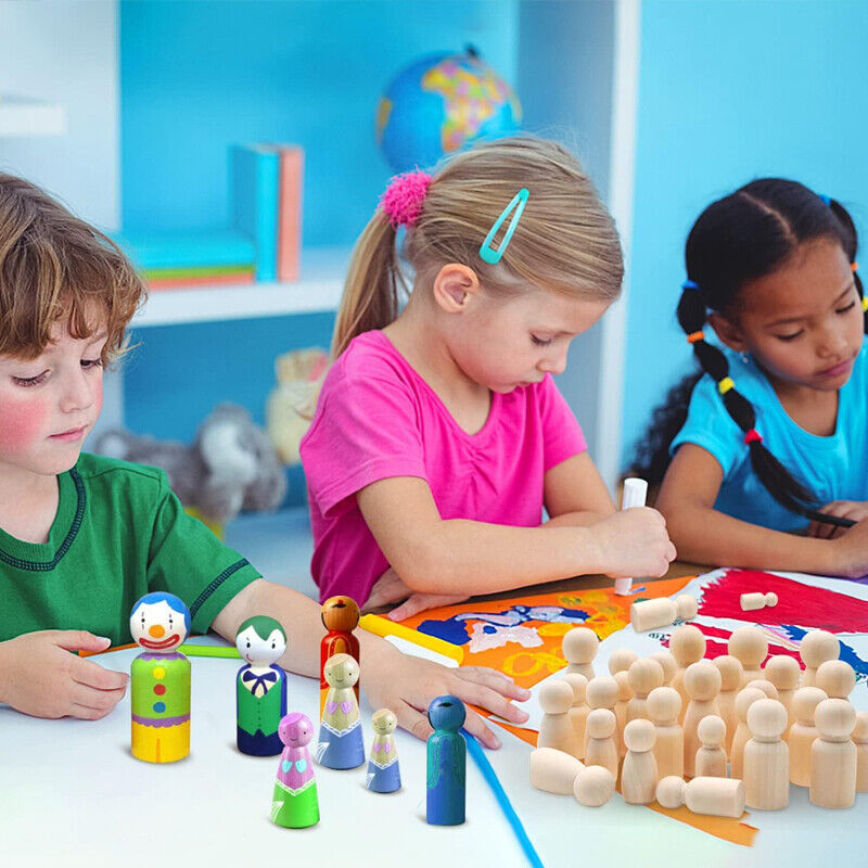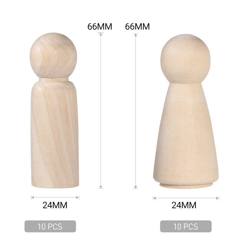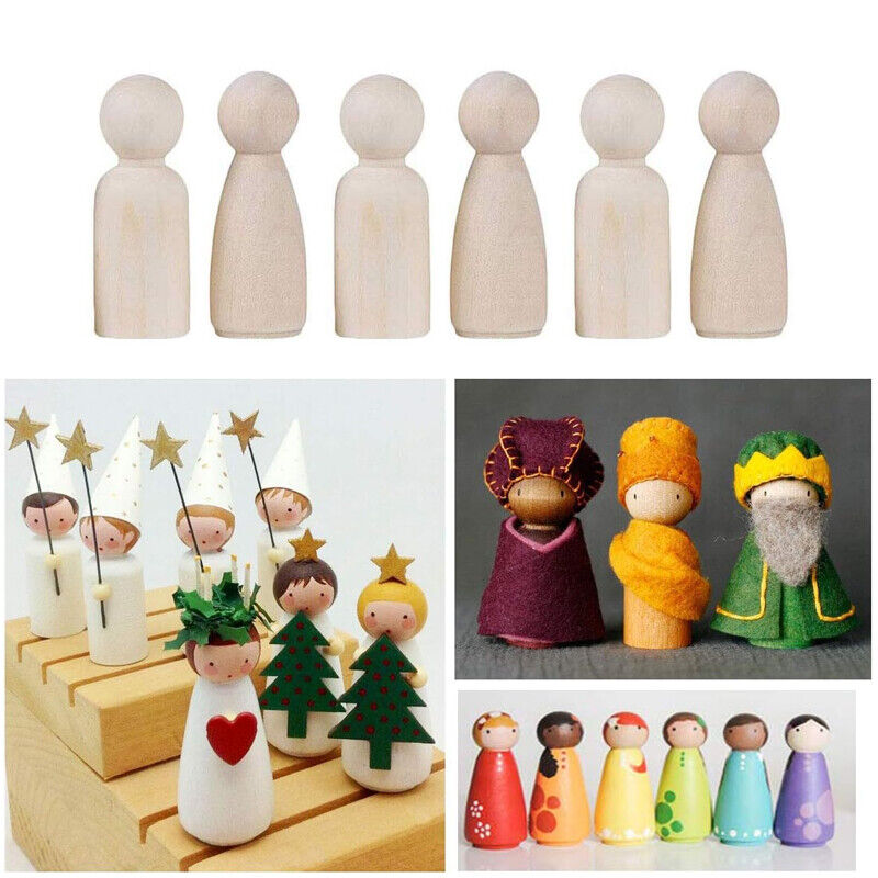 20X Unfinished Wooden Peg Dolls Wooden Tiny Doll Bodies People Decor Wood Crafts